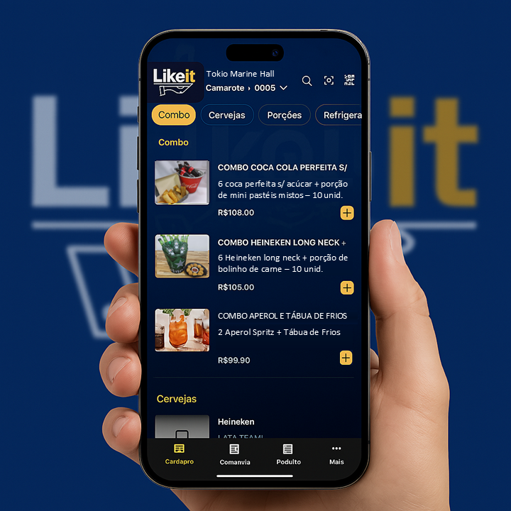 Com a Likeit, seus clientes fazem tudo pelo celular, sem precisar do garçom — rápido, fácil e eficiente.